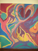 Un cuadro a la intemperie con una mujer desdibujada y unos colores vibrantes. Ese proyecto de cuadro que me recuerda porque estoy donde estoy, porque termine aca.